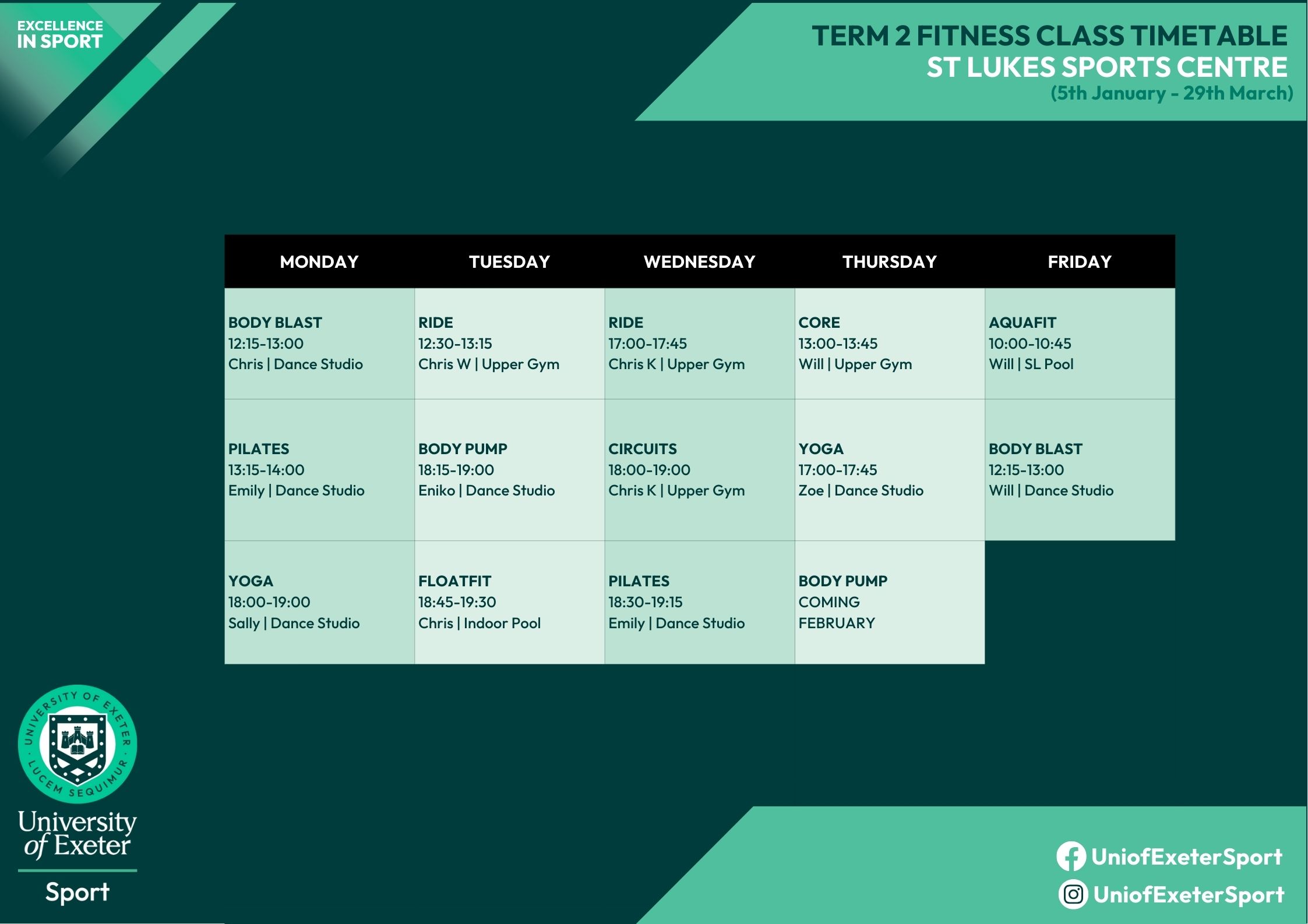 For St Luke's Sports Centre classes call 01392 724940
